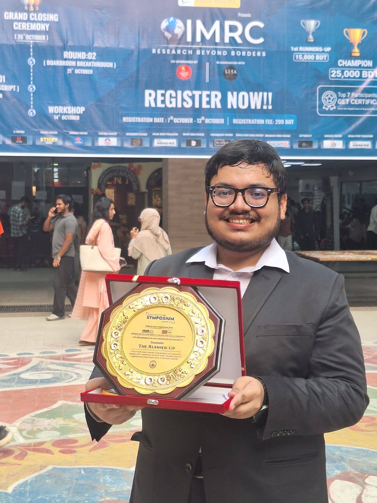 Nurshalin Islam Shifat, Intake 46, Department of Law and Justice, secured the 1st Runner-up position at the Undergraduate Law Symposium, Summer 2025 organized by North South University on 16 October 2025.