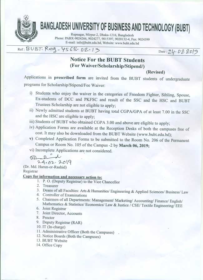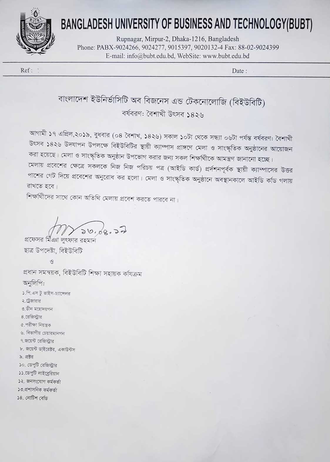 One Stop Service Center: 01810033740 (for BUBT current students)