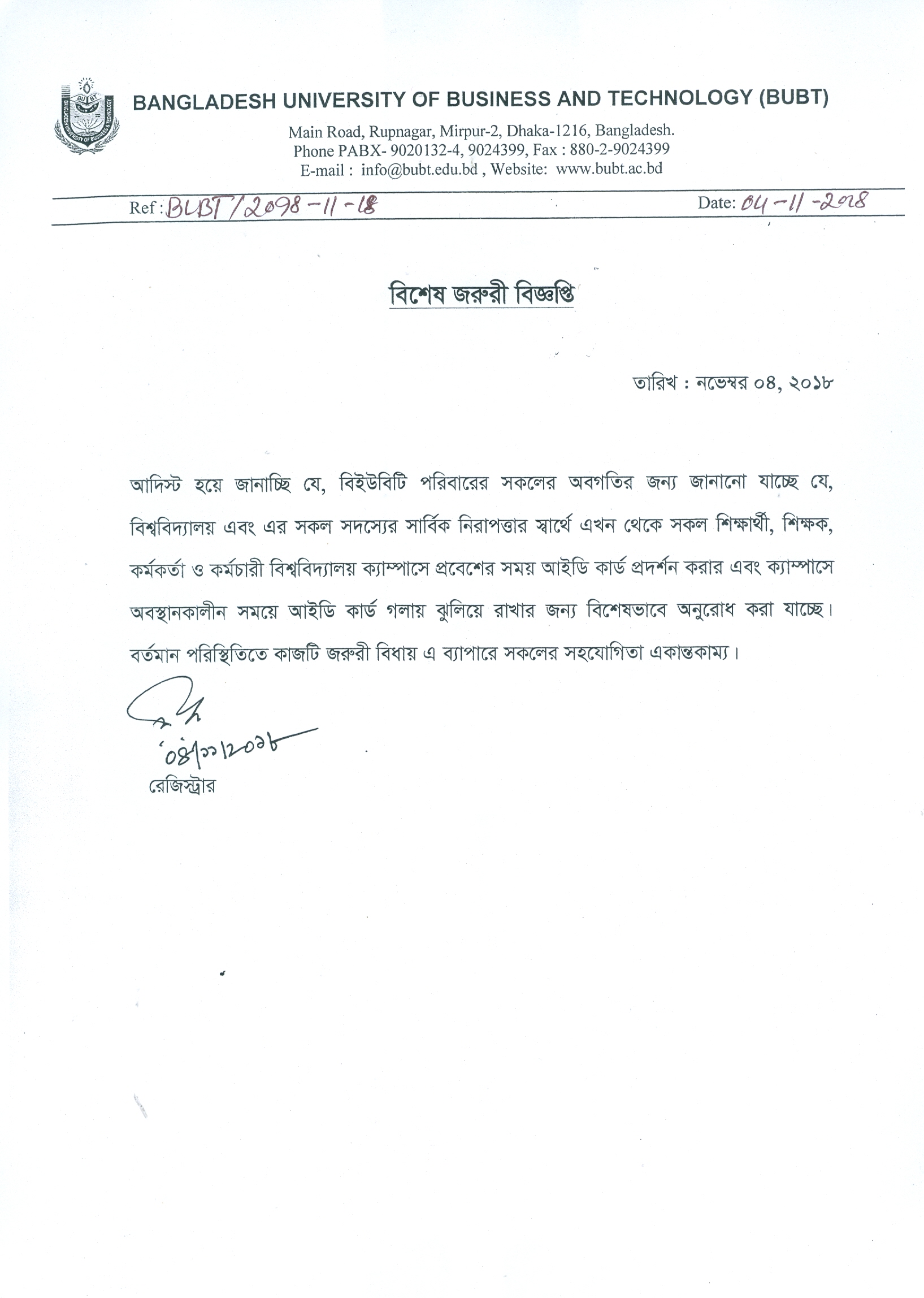 Email: info@bubt.edu.bd
