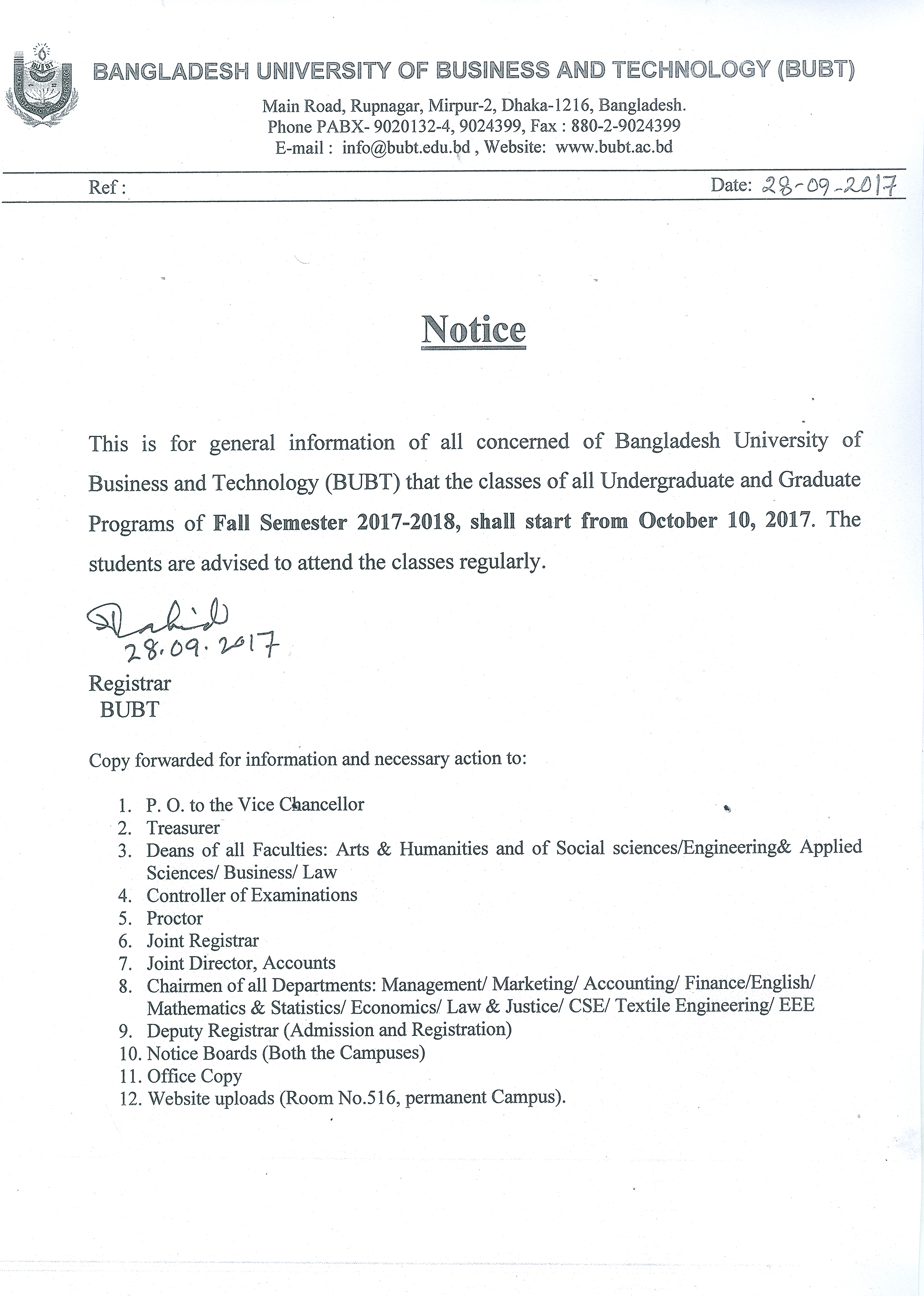 One Stop Service Center: 01810033740 (for BUBT current students)