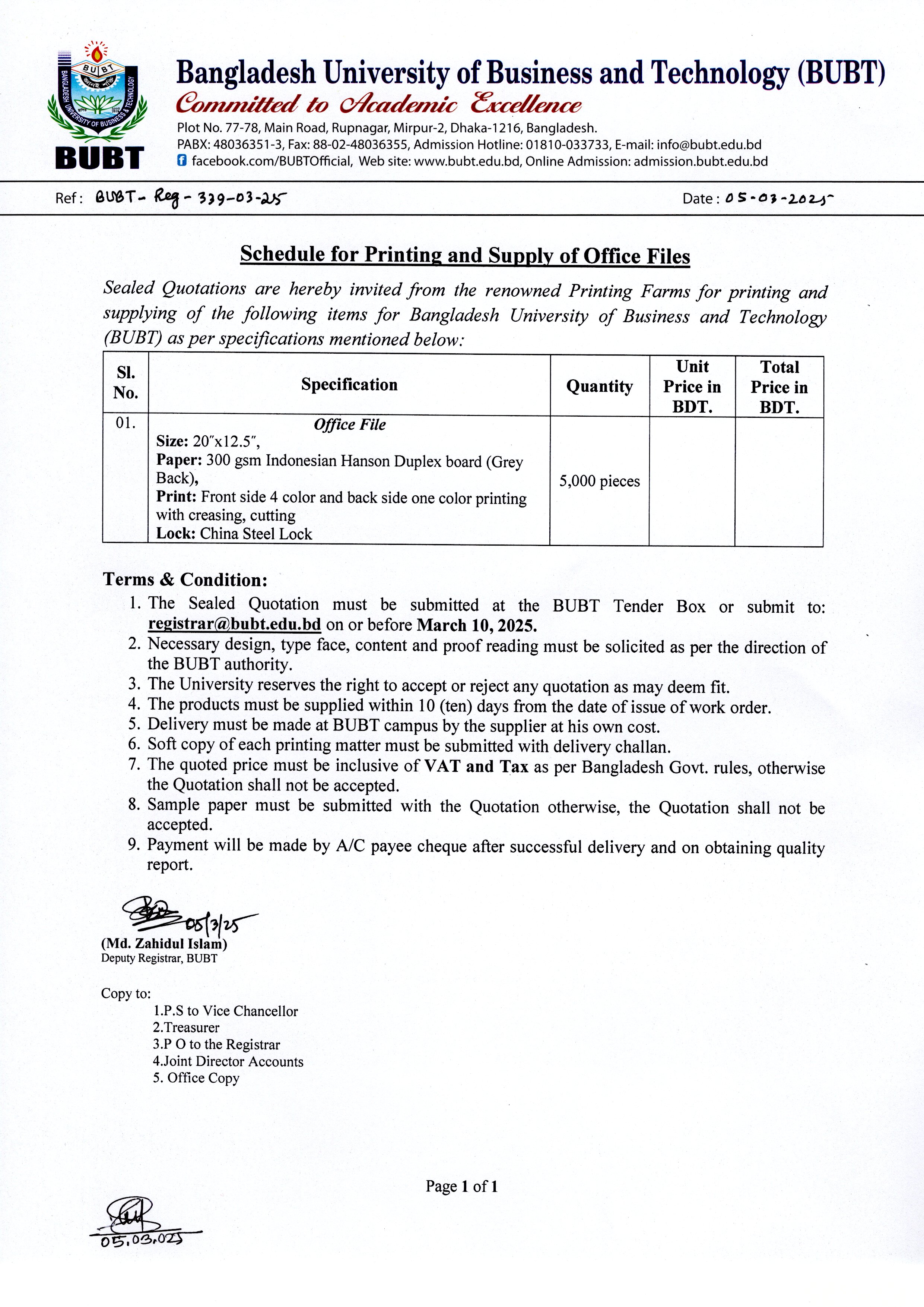 One Stop Service Center: 01810033740 (for BUBT current students)