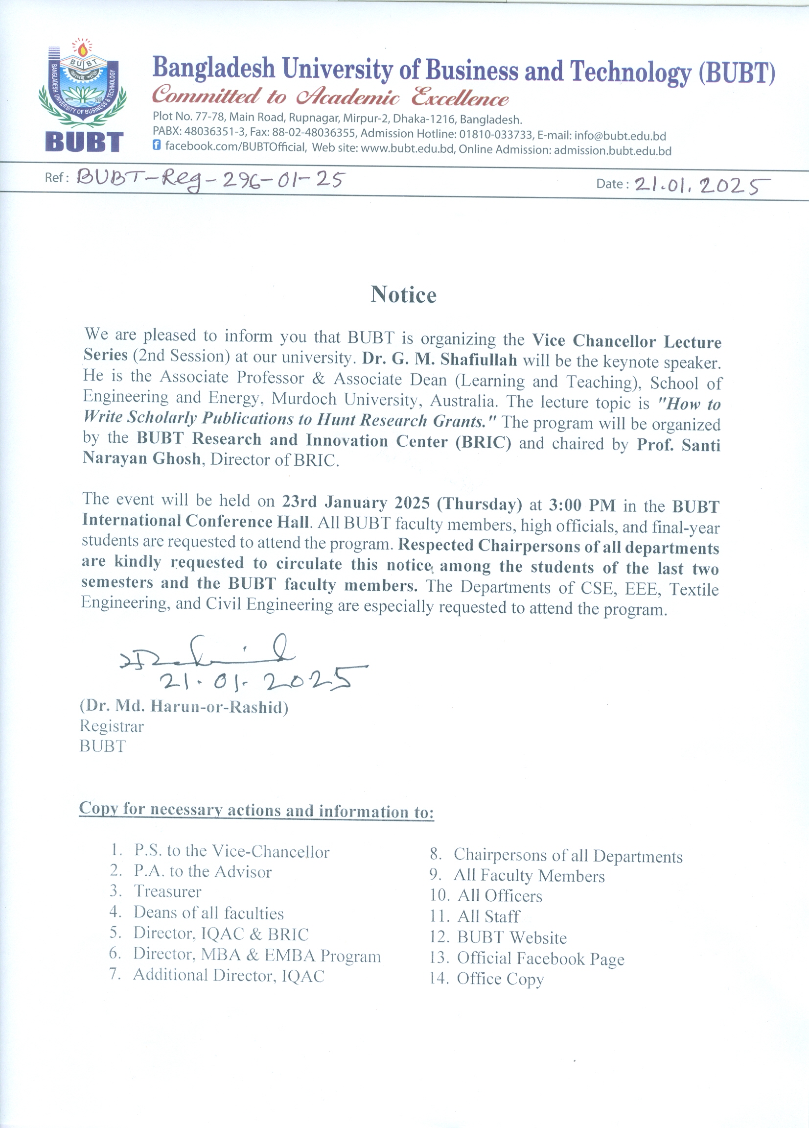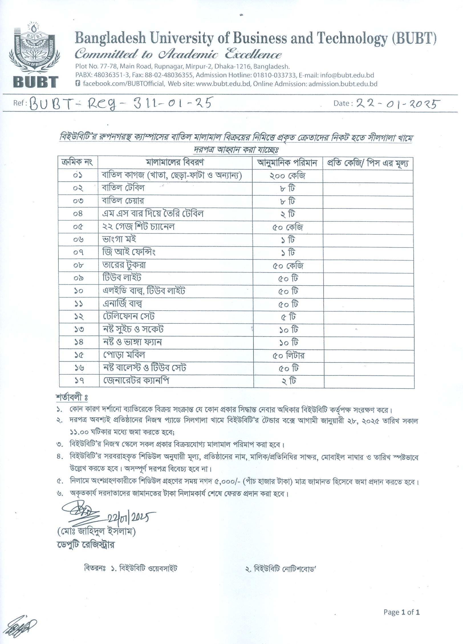 One Stop Service Center: 01810033740 (for BUBT current students)