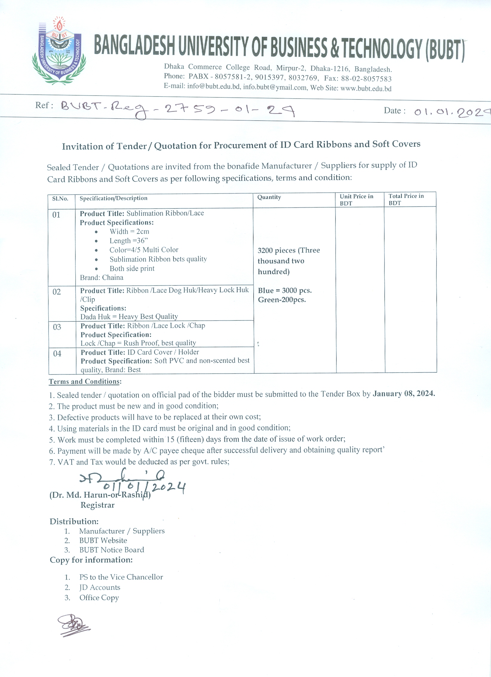 In this connection, the CGC is planning to make a panel of 100 potential students. We kindly request the esteemed departments’ chairmen to submit the curriculum vitae (CVs) / information of students who express interest in registering their names. Students may instead deliver or transmit their CVs to the CGC Office in person (or send to directorcgc@bubt.edu.bd) before January 18, 2024 (Thursday).