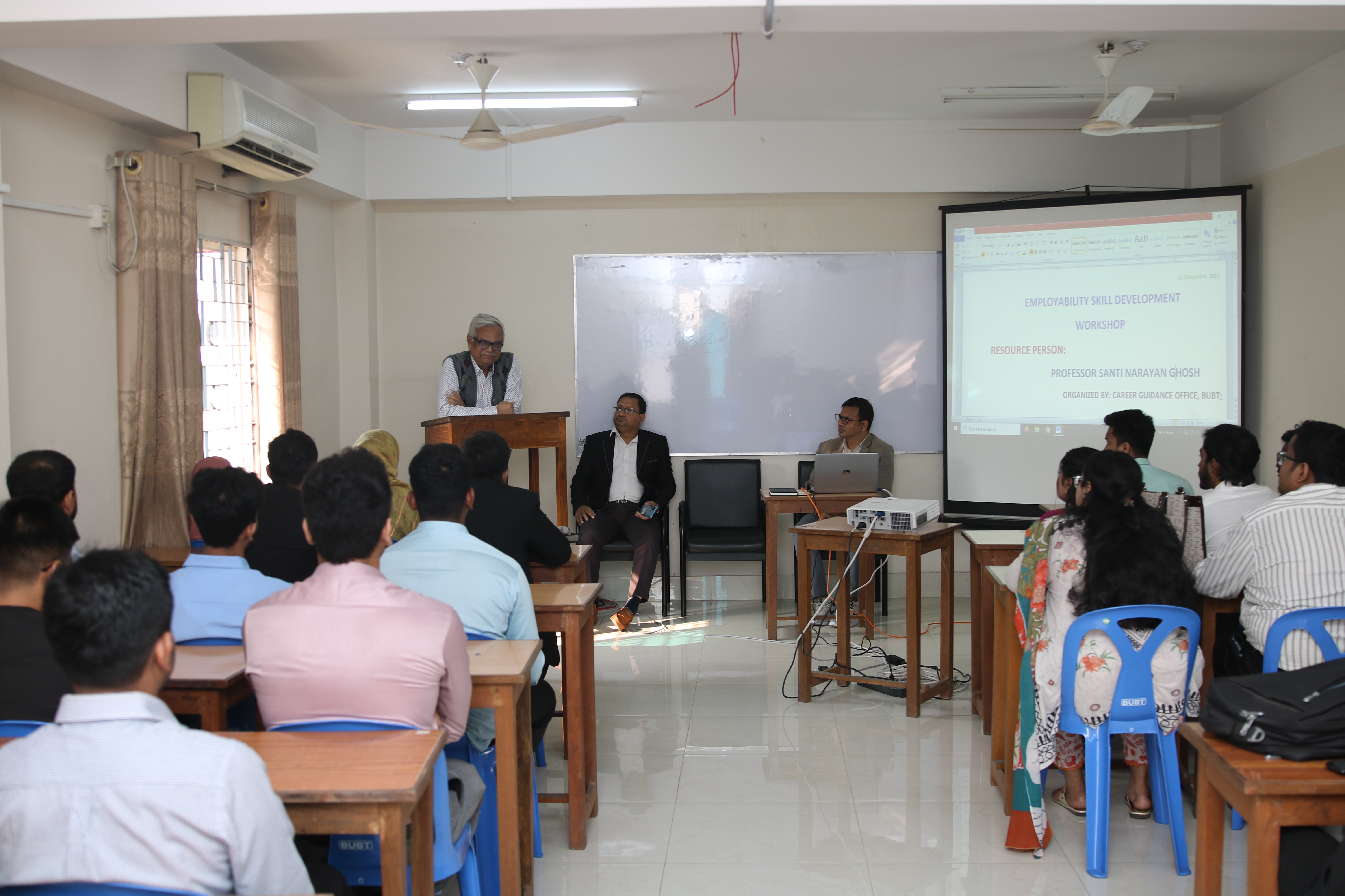 Career Guidance Office of Bangladesh University of Business and Technology (BUBT) was arranged workshop with “Employability Skill Development Workshop” for the soft skill development of BUBT students at BUBT Campus on 21 December 2023. A number of students from various departments participated in the workshop. Prof. Shanti Narayan Ghosh, Director IQAC and Dr. Mohammad Masudur Rahman, Director Career Guidance, were present in the workshop. The session was anchored by Mr. Mesbahul Hasan, Deputy Director, Career Guidance Office, BUBT.